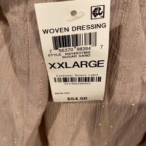 Tan with gold sparkles, short sleeves off the shoulders blouse