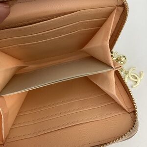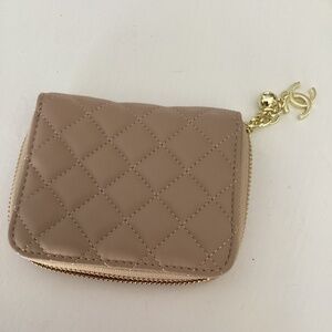 Tan zip around Diamond Quilted faux leather CC Wallet