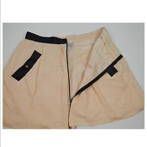 Tan Front Zipper Skirt w/ Pockets. Black ribbed silk waist band. No stains or rips.