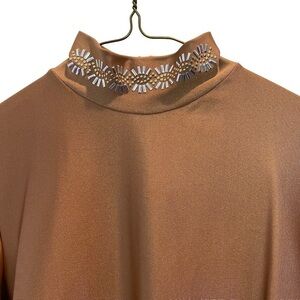 Tan/Gold mock neck Bodysuit size Small thong studded long sleeve by NB Winner