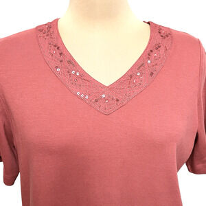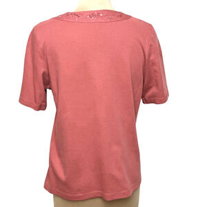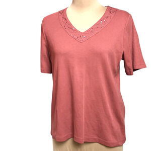 TanJay Cardigan Sweater Top Set Womens Medium Large Beaded Knit Pink Coral Vtg