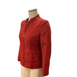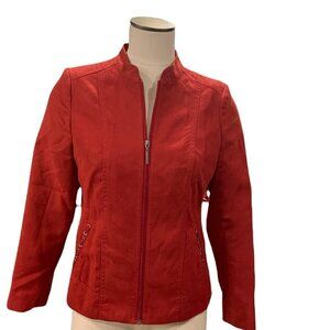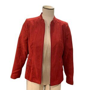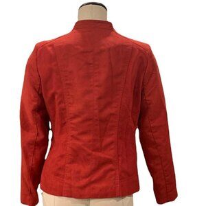 TanJay Faux Suede Red Moto-Style Jacket Sz 6P Lace-up Detail Pockets #215F