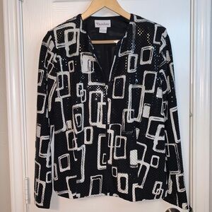 TanJay Geometrical Sequin Zip Up Business Casual Blazer & Tank Top Set Small