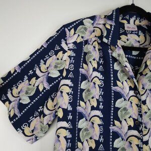 TanJay Hawaiian Floral Button Down Shirt Blouse Size 18