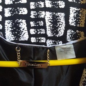 Black and white print. Fully lined