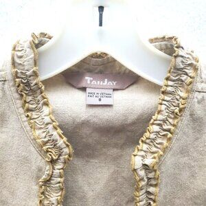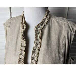 TanJay Linen Blend Vest Ruffle Trim Size 8 - EUC!