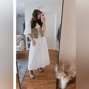 Linen and cotton blend vintage vest. Open front. Sewn ruffle trim, from same linen material, structured. Beautiful seam work, gives structure! Easy to layer, mix and match! Wear this throughout the entire year, easy to take from season to season! Lots of options! **Inspirational outfit ideas included with like item, not exact - Ask me any questions!?!