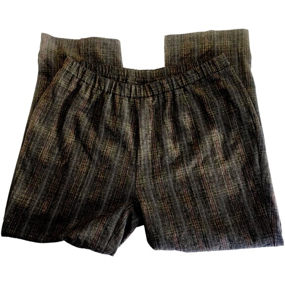 TanJay Pants Comfort Slacks Sweatpants Elastic Soft Wide Leg Brown Plaid 16 W