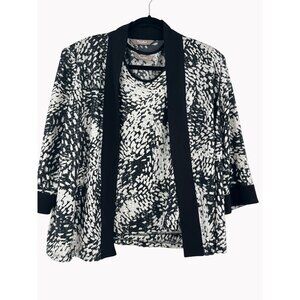 TanJay Petite Size L 2 Pc Set Black White Abstract Textured Tank Jacket