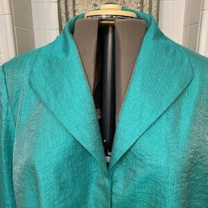 TanJay. Size 16W. Shimmer Rayon/poly/nylon. Long Sleeve. Lined. Pockets. Center back 26". Shoulder to hem 27". Sleeve 24.4". Bust 47". Excellent pre-loved condition. No spots, tears or damage.