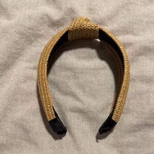 This elegant tan woven headband is a perfect accessory for any outfit. Its intricate design adds a touch of sophistication to your look.