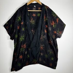 Tanami Kimono Blouse Cardigan Womens 2X Black Rayon Firework Print Boho Festival