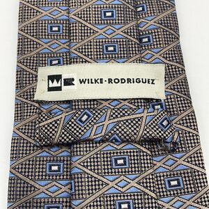 Tan and blue 100% silk Wilke Rodriguez necktie