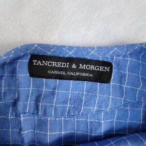 Tancredi & Morgen Womens Blue Checked Long-Sleeve Button-Up Shirt Blouse Medium