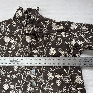Tancredi & Morgen Womens Floral Embroidered Long Sleeve Button-Up Blouse Brown
