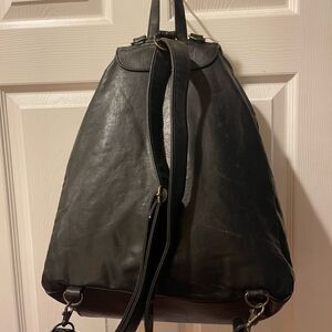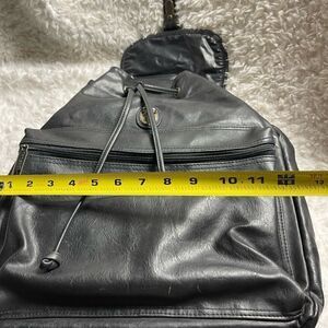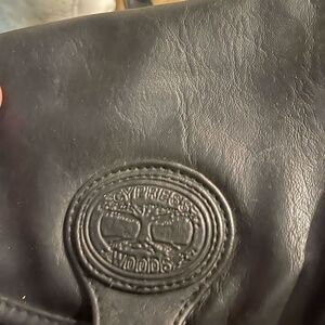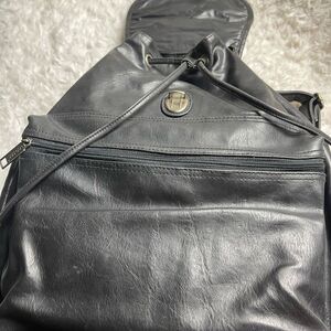 Tandem Cypress Woods Black stimulated leather backpack antique tone hardwares .front zipper pocket,drawstring string closure top flop snap closure the spacious inside lining has a side zipper.Pre owned in good used condition normal wear no tear see all pictures any questions please message.Z1