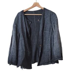 Tandem Made in Italy Jacket Top Womens OS Lagenlook Linen Blend Reversible Gray