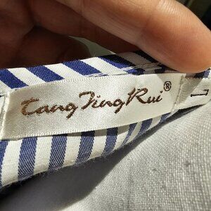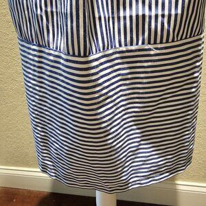 Tang Jing Rui Large Blue & White Nautical Striped Dress W Rear Tie