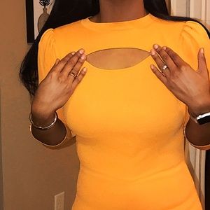 Keyhole neckline dress with thick woven material that does well in all seasons. This is a showstopper yet professional.