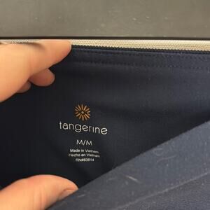 Gently Used Tangerine Leggings. These are a women's small. Blue color throughout. Wider leg fit through the ankles. Cute leggings! 80% polyester, 20% spandex.