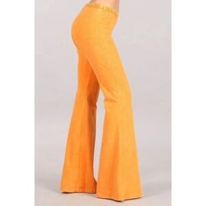 Tangerine Orange Boho Mineral Wash Stretch Flared Bell Bottom Casual Pants