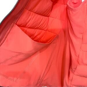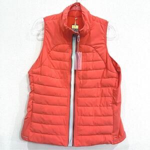 • Lightweight coral (papaya) quilted puffer vest with stand-up collar