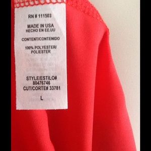 New with tags, Marshals, size Large, tangerine red color, thin shoulder straps, racer back, crisis cross front, blouses at the bottom. Slightly longer in the back. Polyester material. Wash cold gentle, hang to dry.