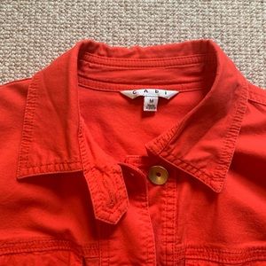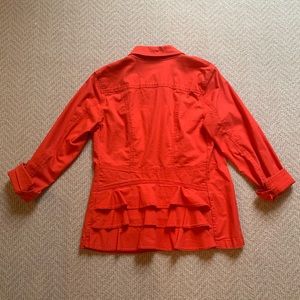 Tangerine (Red/Orange) stretch twill jacket. Great ruffle detain on back. Gold buttons, four pockets. Smoke free home.