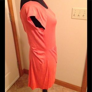 Light materiel is silky and soft. Slight cap sleeve and tulip hem make this too stand out. The measurement across the bust is approximately 18 inches and it is 29 inches from the top of the shoulder to the side hem. Labeled XL, but it is closer to a large. NWOT.