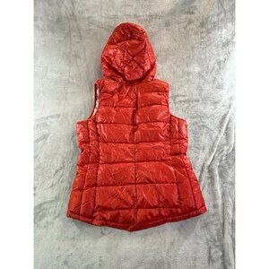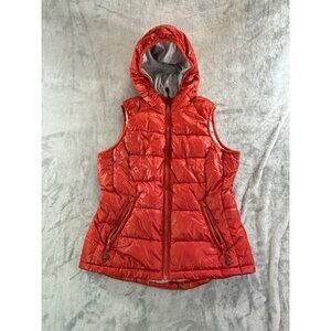 Tangerine Vest women's small orange puffer lined w/ hoodie and pockets full Zip