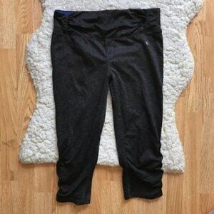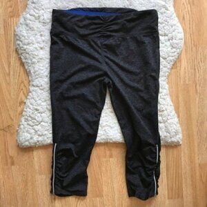 Tangerine:Gray/ Heathered Black Cobalt Blue Zipper Capris M style W9387C617 in GUC with so much life left to live. These Capri are Dark Gray/Heather Black with Cobalt Blue under silver Zipper Detail on the lower area on Leg and stunning ruching on waist and legs. Great addition to add to anyones Athleisure collection. Workout, running errand. Use zoom to see intricate details in photos and please ask questions.
