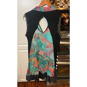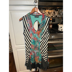 Tango Mango Multi Pattern Ruffled Botton V-Neck Dress XL