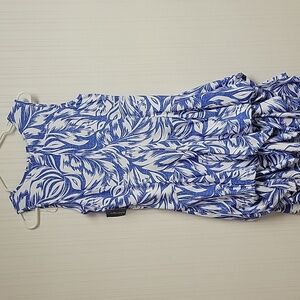 Tango Mango, women's Blue and White Sleeveless Dress With Bustles Sz Small NWT