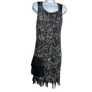 Tango Mango womens size Medium Black & White sleeveless Dress Artsy nylon mesh