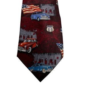 Tango Route 66 Classic Car USA Flag Silk Necktie Tie Handmade
