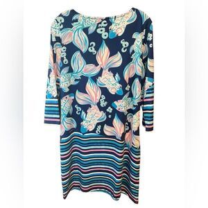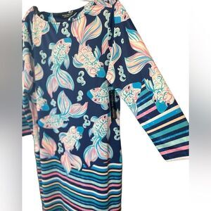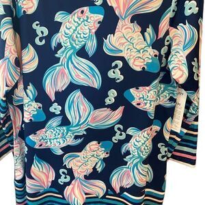 Tango Mango S NWT Blue Pink Koi Fish Stripe ALine Summer Cruise Vacation Dress