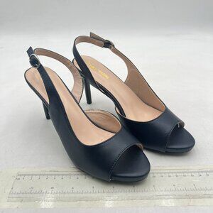 Tang'scuisins Black Open Toe Sandals Strappy Slingback Pumps Stylish High Heel Shoes Chic Club Party Shoes