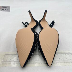 Tang'scuisins Black Studded High Heels Slingback Pointy Toe Pumps Sexy Sandals