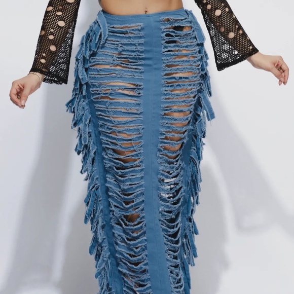 Denim distressed skirt