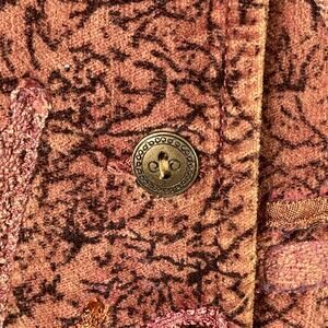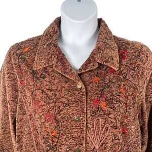 Tanjay Jacket Womens Large Brown Embroidered Fall Leaves Soutache Trim Velvety