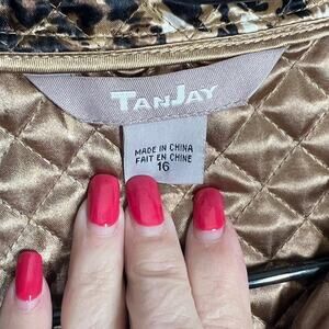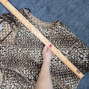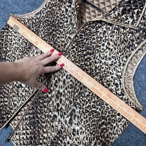 Tanjay Quilted Vest Womens Size 16 Gold Black Leopard Print Zip Up Y2K Safari Wild