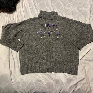 Tanjay Size Large Long Sleeve Sweater Collared Embroidered Ice Skaters