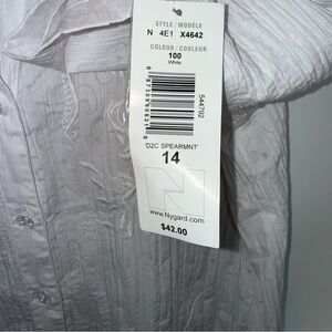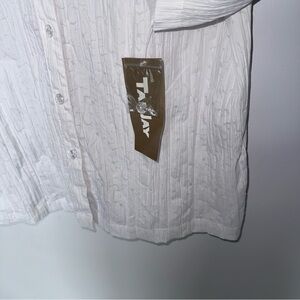 Stylish white shirt with textured design. Button-up front and short sleeves. 27” length. 24” pit to pit
