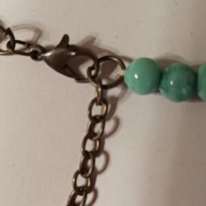 Tanjore India Beaded Bib Style Necklace Stunning Turquoise GREEN & Metal Beading