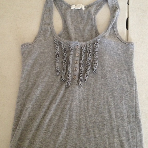 Racer back tank top! Ruffles and buttons in the front. Long and stretches.