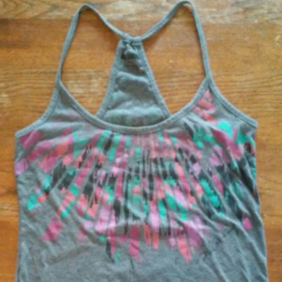 Gray with assorted color on the chest and spine of shirt. Cotton super soft