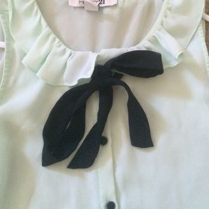 Light green , with black bow , button up