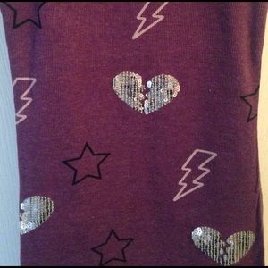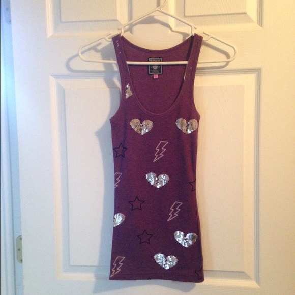 Deep purple tank with sequenced heart, & lightening bolt pattern. Mint condition