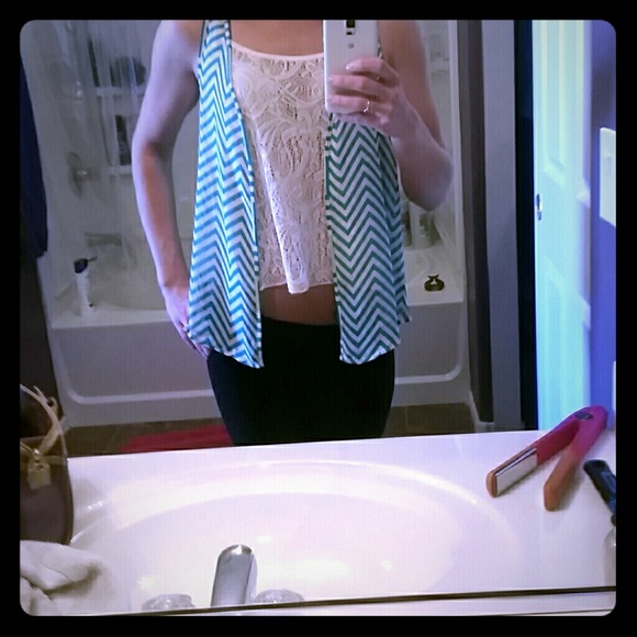 Lace tank top and chevron unattached vest