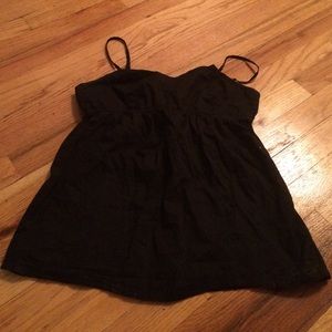 Tie back black tank top with elastic right under the chest